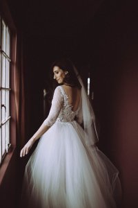 Hair extensions, a full, voluminous, half up half down bridal hairstyle