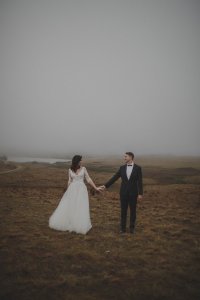 Hair extensions, a full, voluminous, half up half down bridal hairstyle