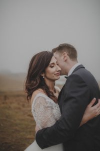 Hair extensions, a full, voluminous, half up half down bridal hairstyle