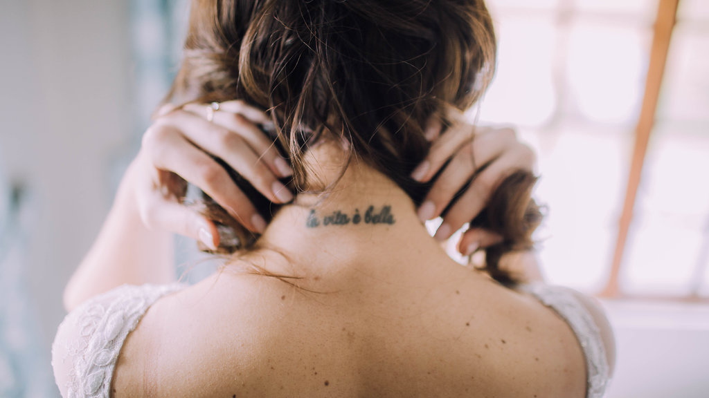 Hair extensions, a full, voluminous, half up half down bridal hairstyle