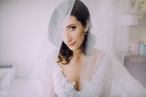 Hair extensions, a full, voluminous, half up half down bridal hairstyle