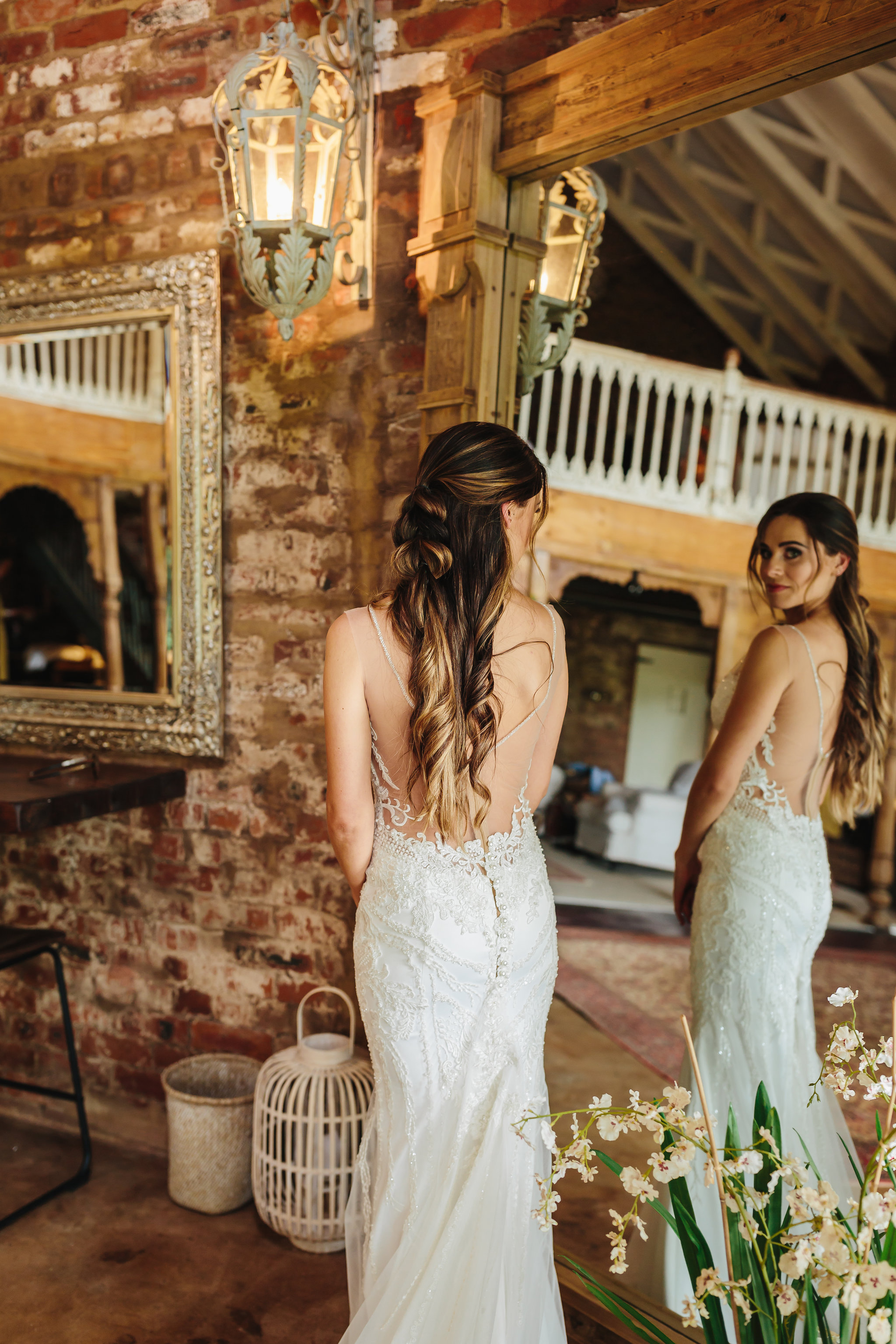 Hair extensions, a full, voluminous, half up half down bridal hairstyle