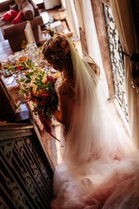 Hair extensions, a full, voluminous, half up half down bridal hairstyle