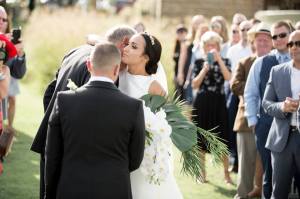 Hair extensions, a full, voluminous, half up half down bridal hairstyle