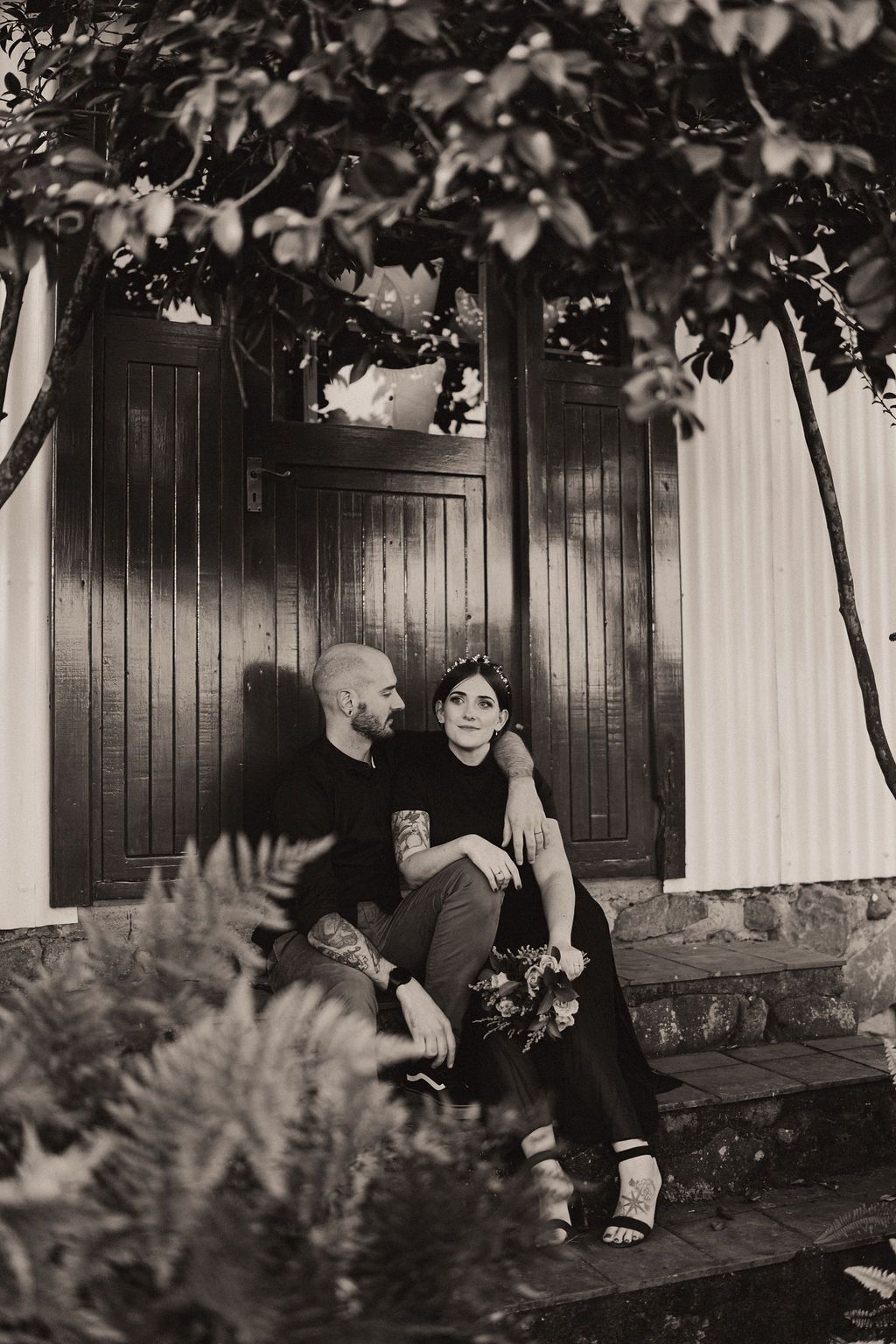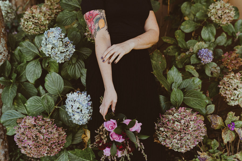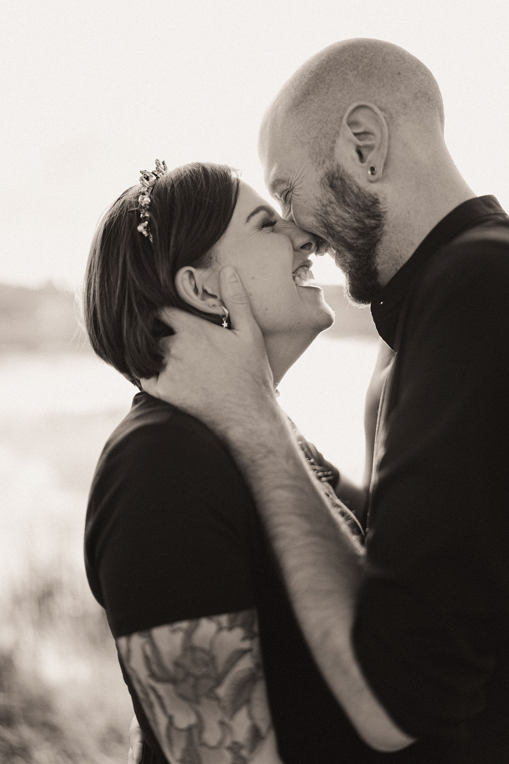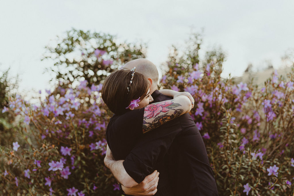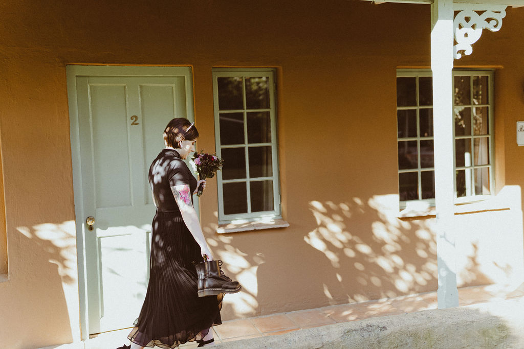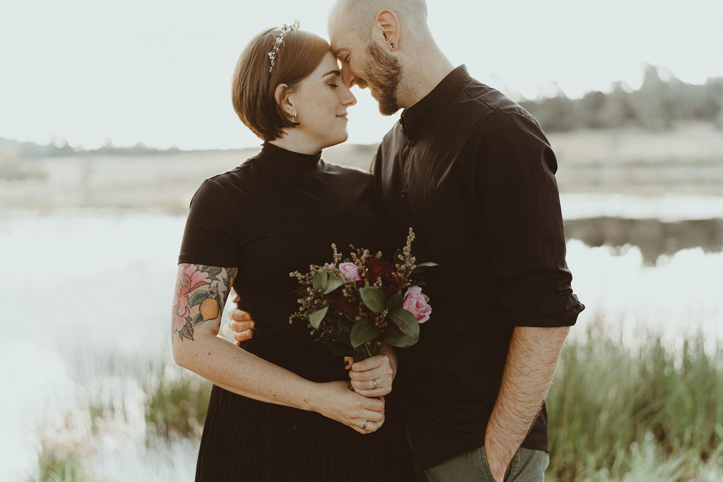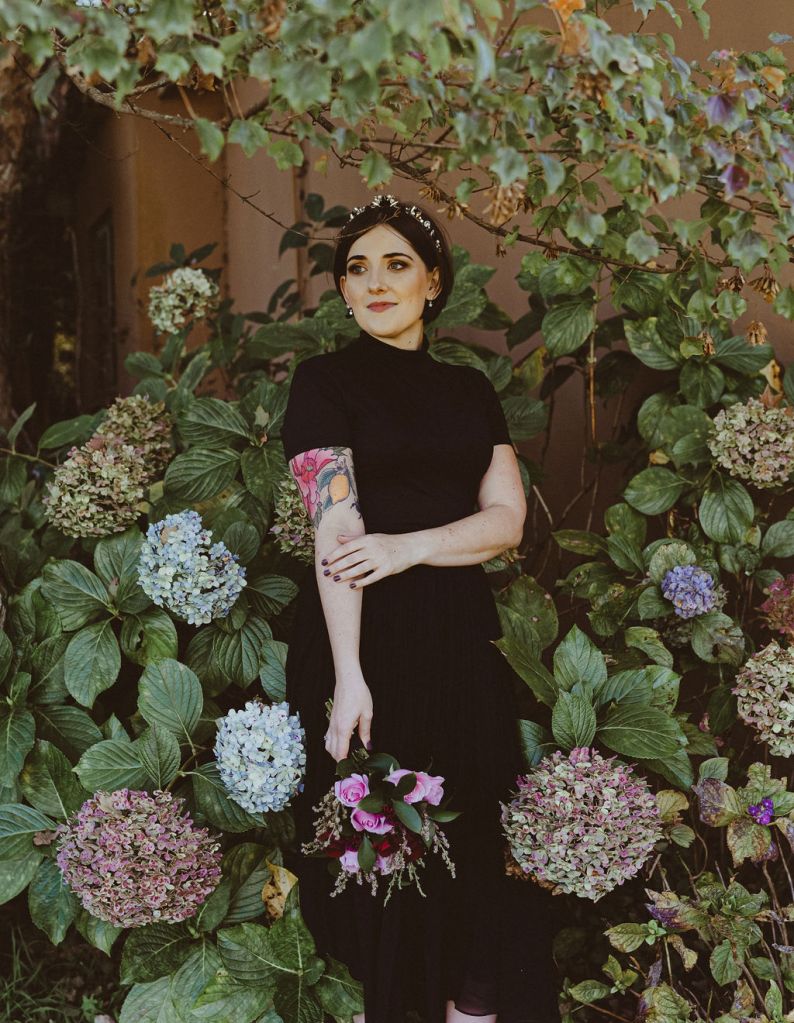Liliana chose a natural, glowy skin, smokey neutral eye with winged liner for her wedding day makeup look. This complimented her original choice of black wedding dress. Getting a chance to do hair and makeup for an alternate bride is such fun for our team!
