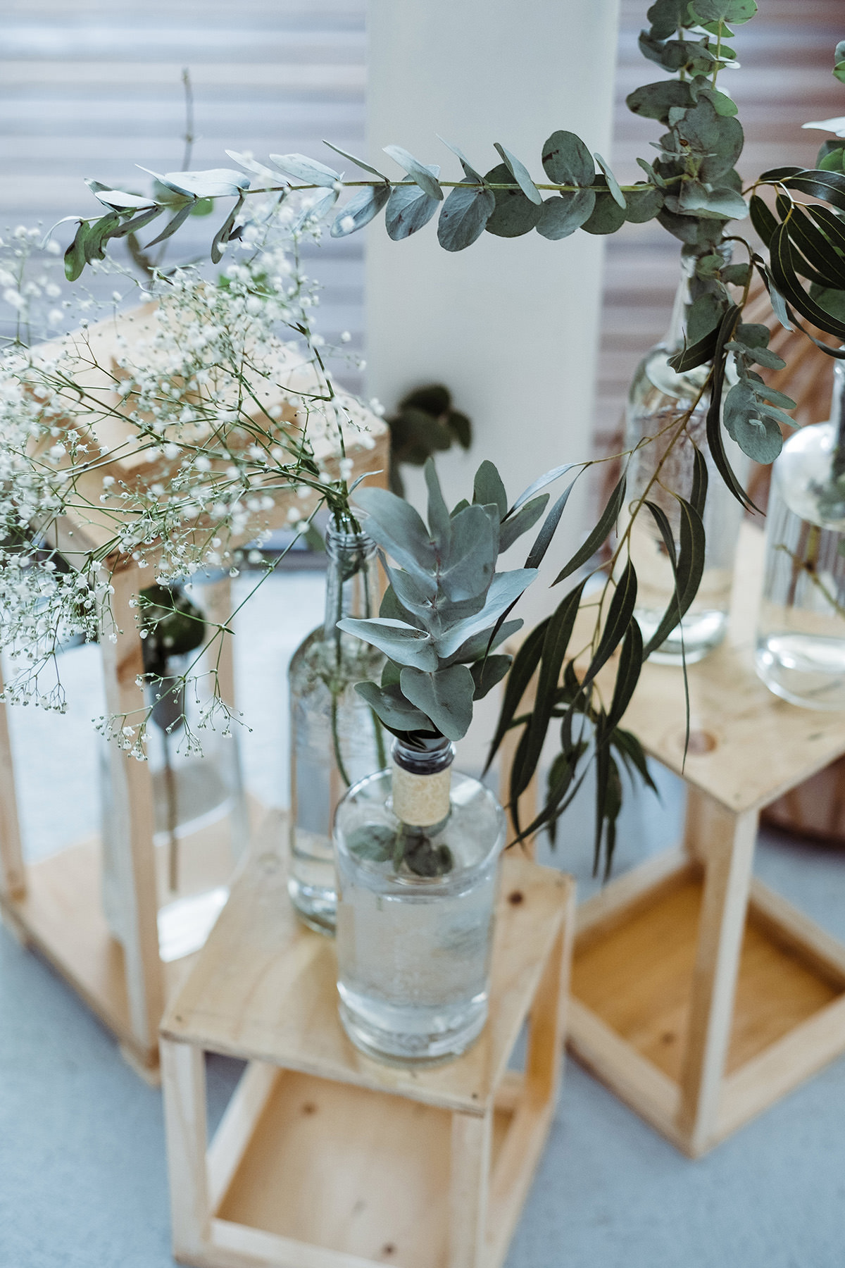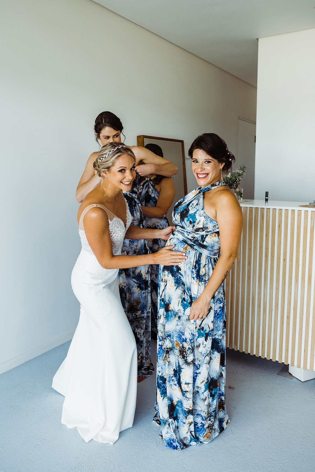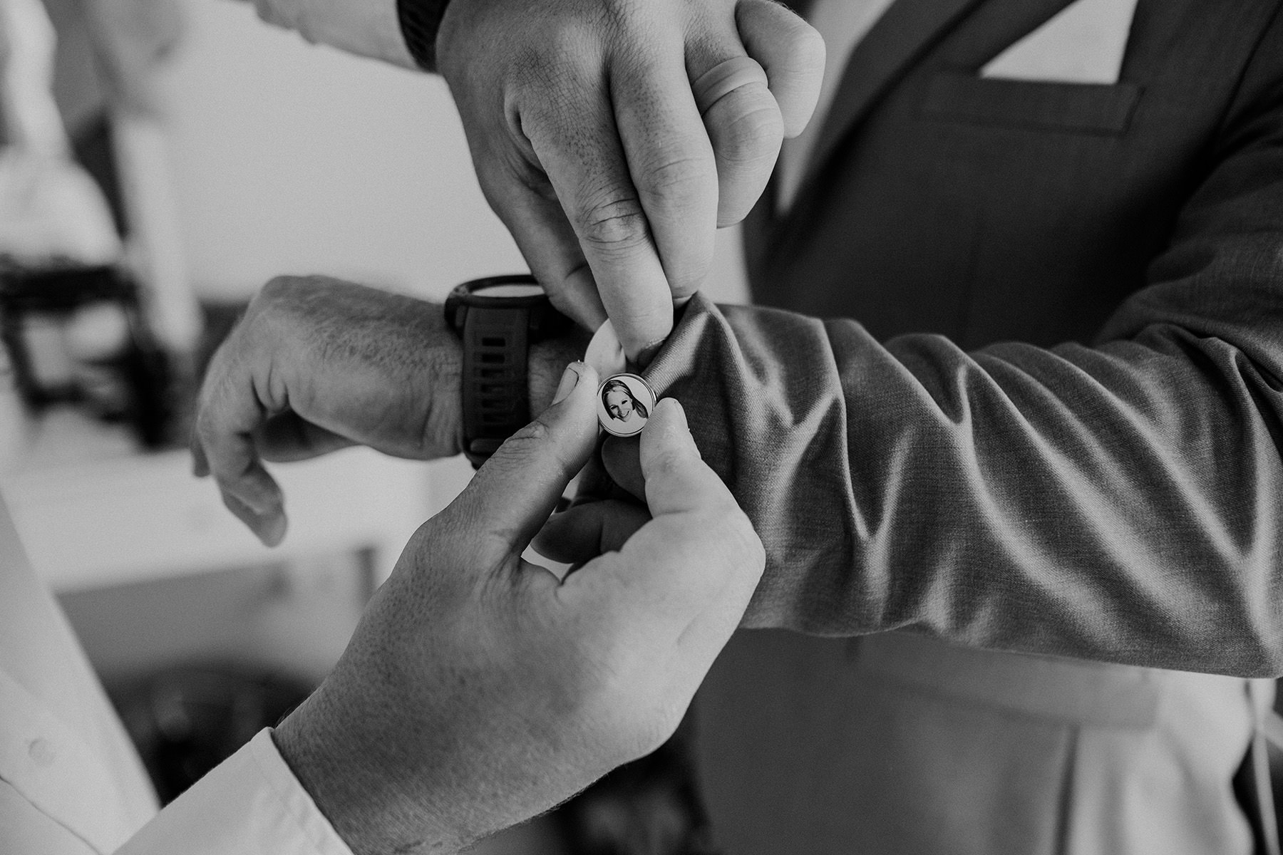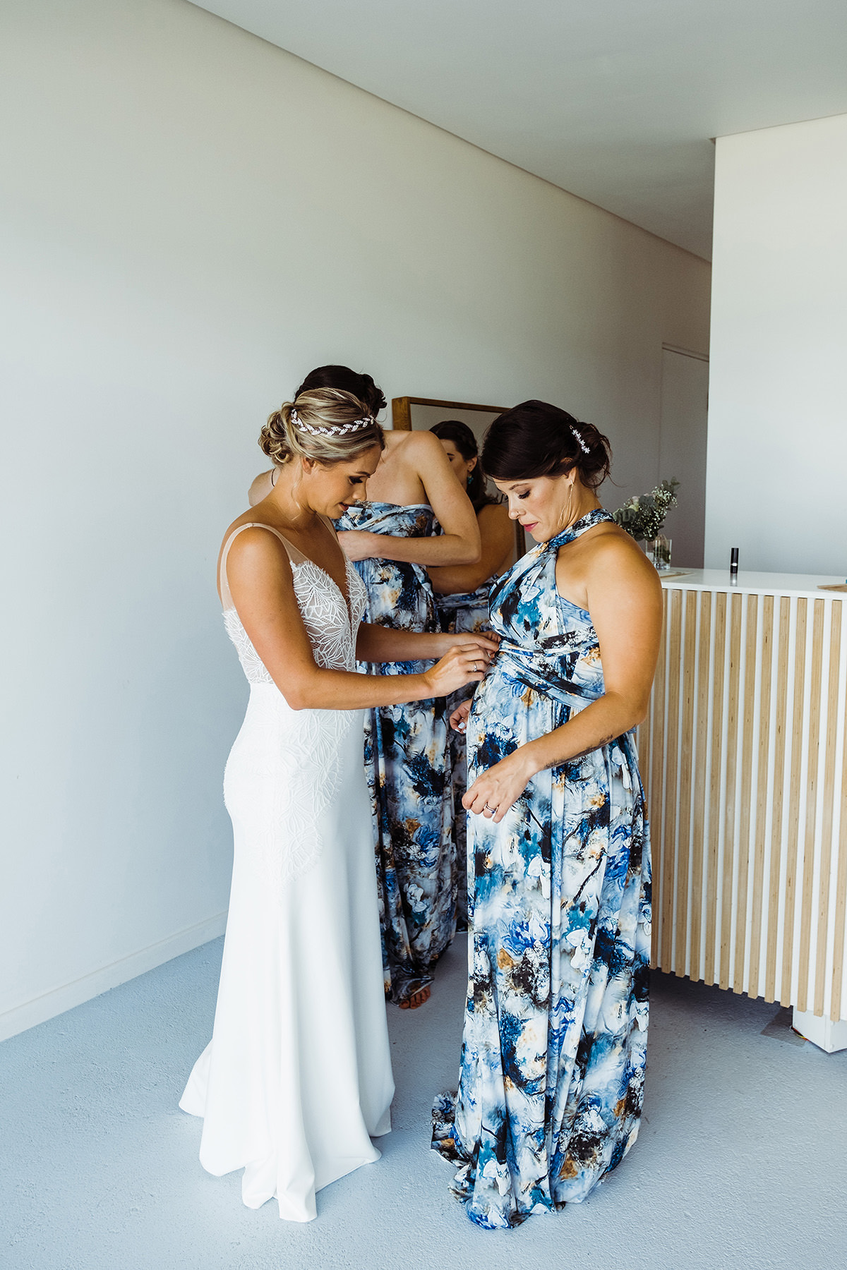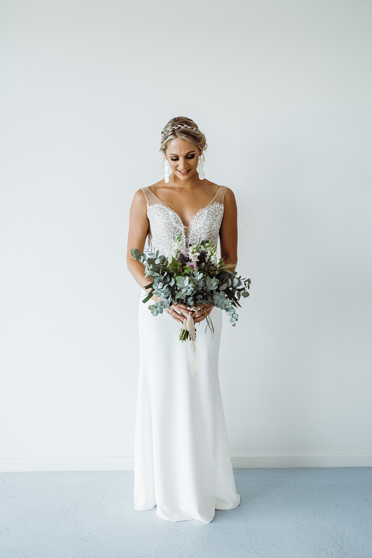Her wedding morning bridal hair and makeup look was something she could have done and not have to worry about all day. She went for a fuss free bridal upstyle and a bolder, shiny eyeshadow to add dimension to her eyes with glowy, highlighted skin. Her lip of choice was a soft nude lip.