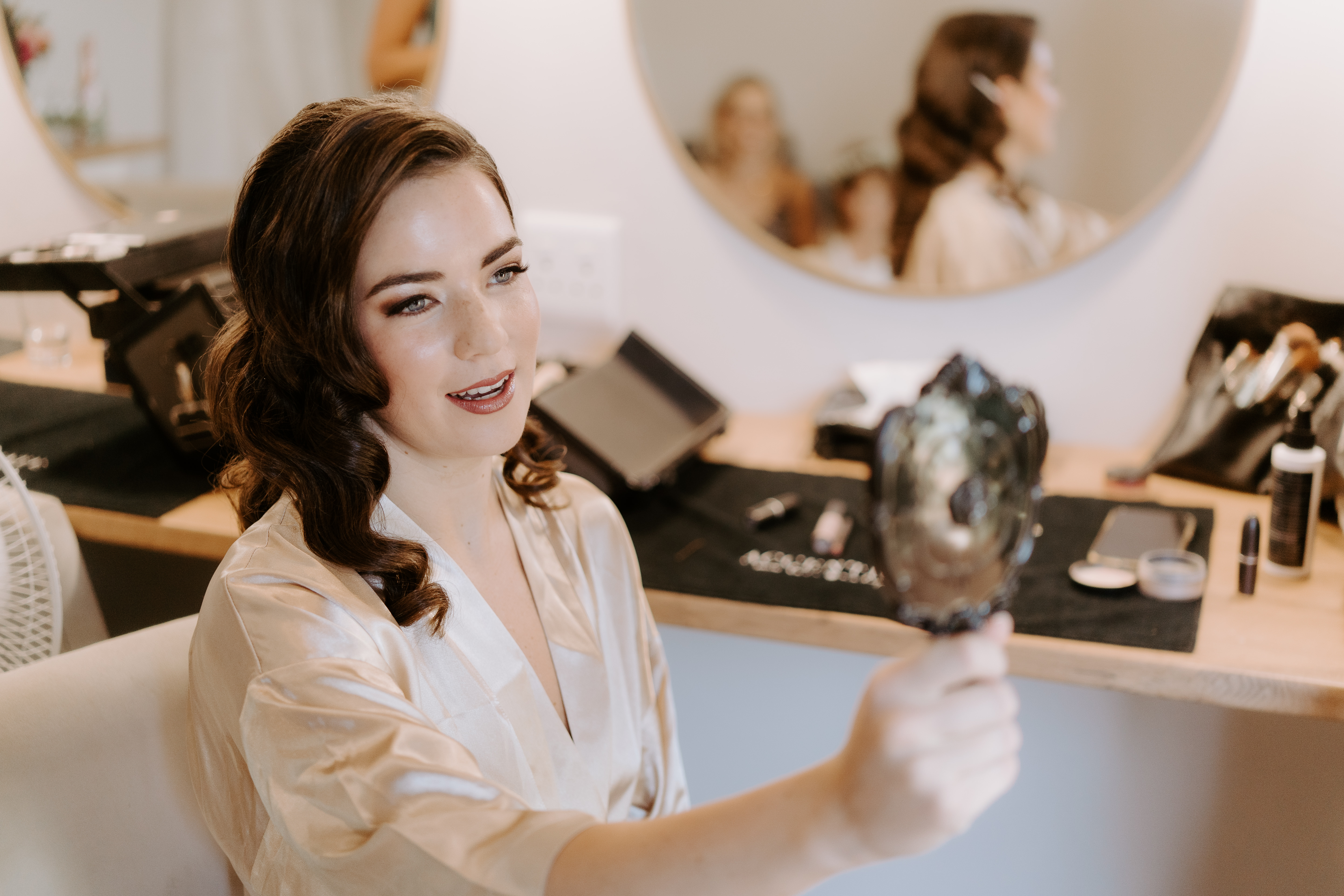 Accentuate bride, Jordin chose a classic, retro inspired Holllywood wave for her bridal hairstyle which offset her strapless wedding dress so beautifully! We worked with her to come up with the perfect makeup look which was glowy, natural and allowed her to feel confident and beautiful!