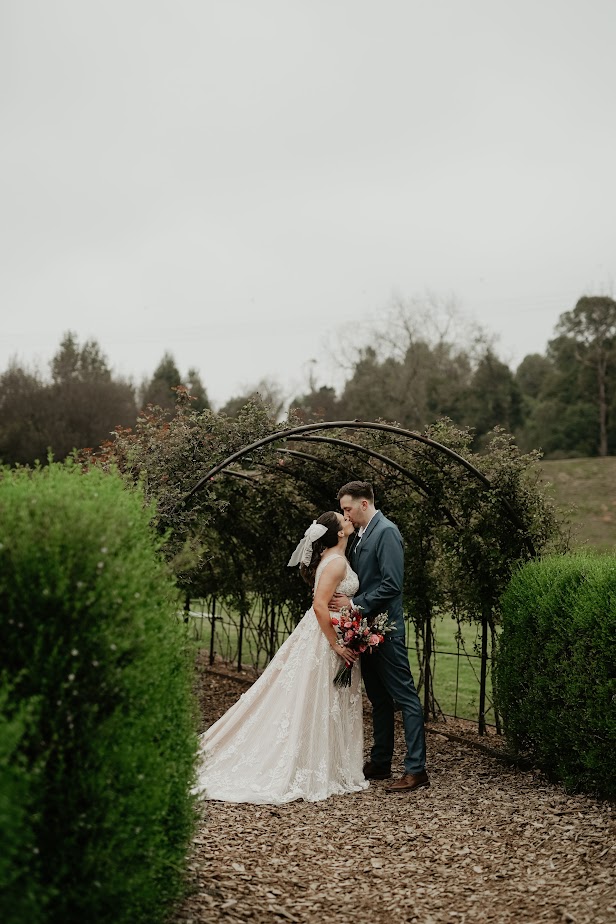 Accentuate bride Kim, chose a retro wave ponytail for as her wedding hairstyle. We decided on a nice perky pony for her bridal hairstyle and then finished it off perfectly with a bow handmade by her dress maker to match her wedding dress! Her wedding hairstyle really did suit her features and her fun personality. For her bridal makeup look, we chose a natural makeup look, with bronzey eyeshadow, glowey cheeks and we accentuated her gorgeous high cheekbones with contour and sparkle on the high points of her face. Her bridal lipcolour was a nice nude pinkey brown by MAC, which she keep in her touch up kit for her touch ups throughout her wedding day.