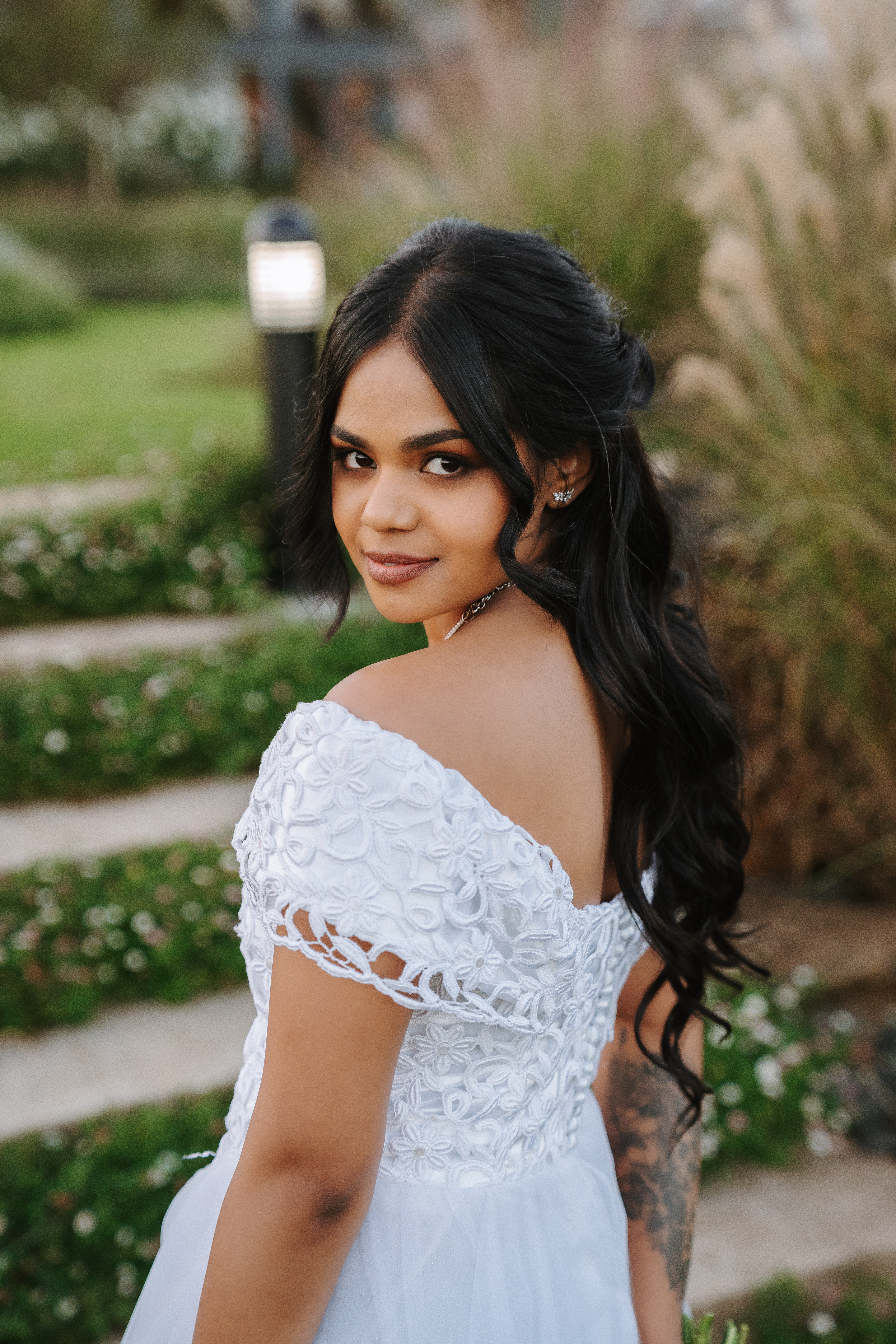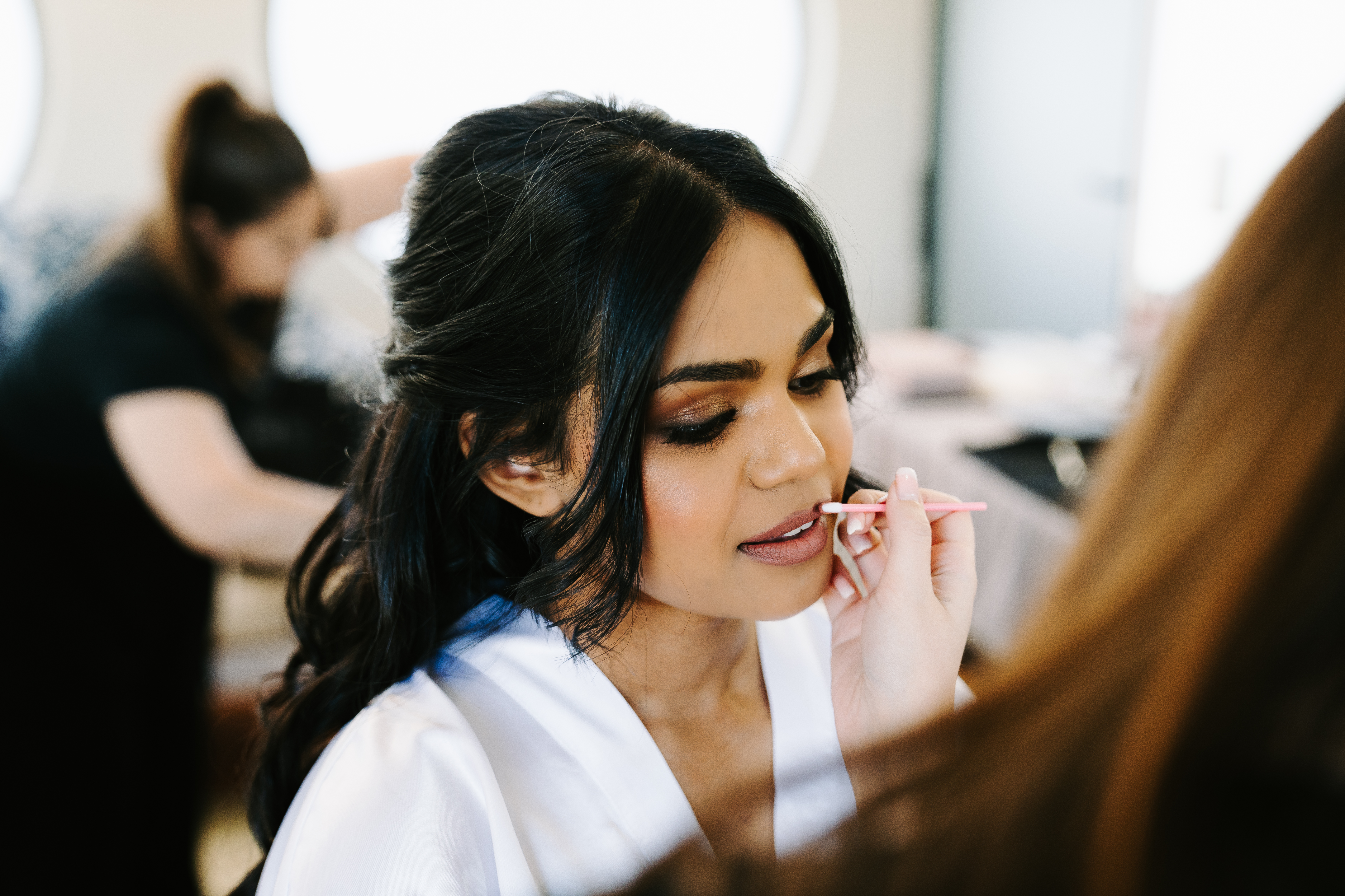 Even though our Bride Courtney had long hair, with our guidance she opted for some hair extensions to add fullness and length to her bridal hairstyle. Her bridal makeup was a neutral bold look.
