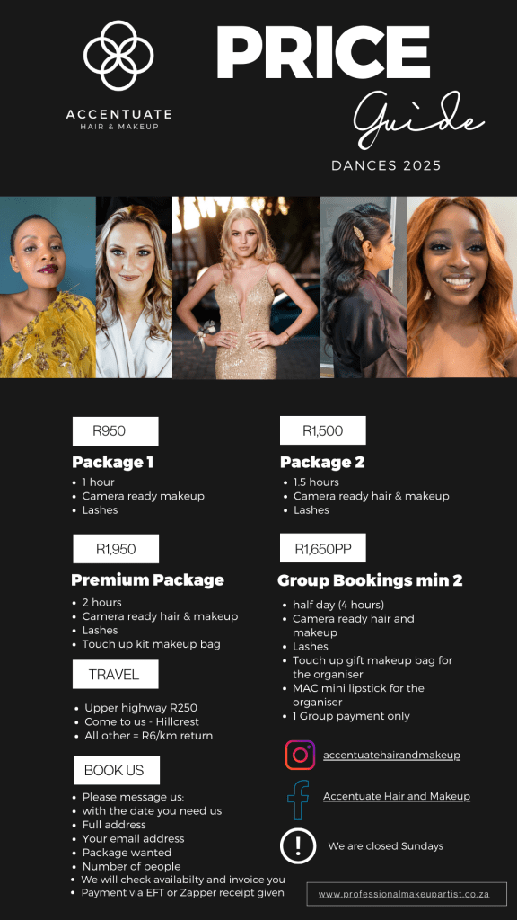 How much does it cost? Prices starting from R1500 for both Hair & Makeup