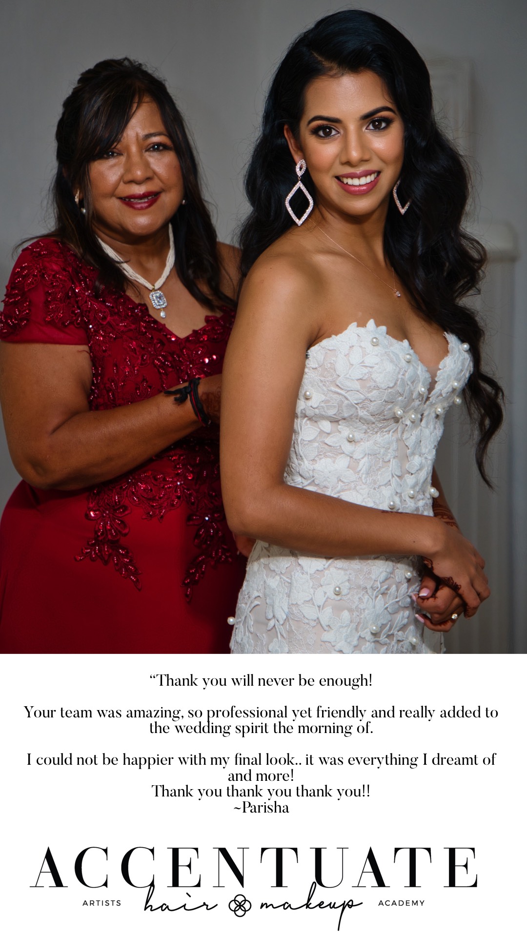 Hair extensions, a full, voluminous, half up half down bridal hairstyle
